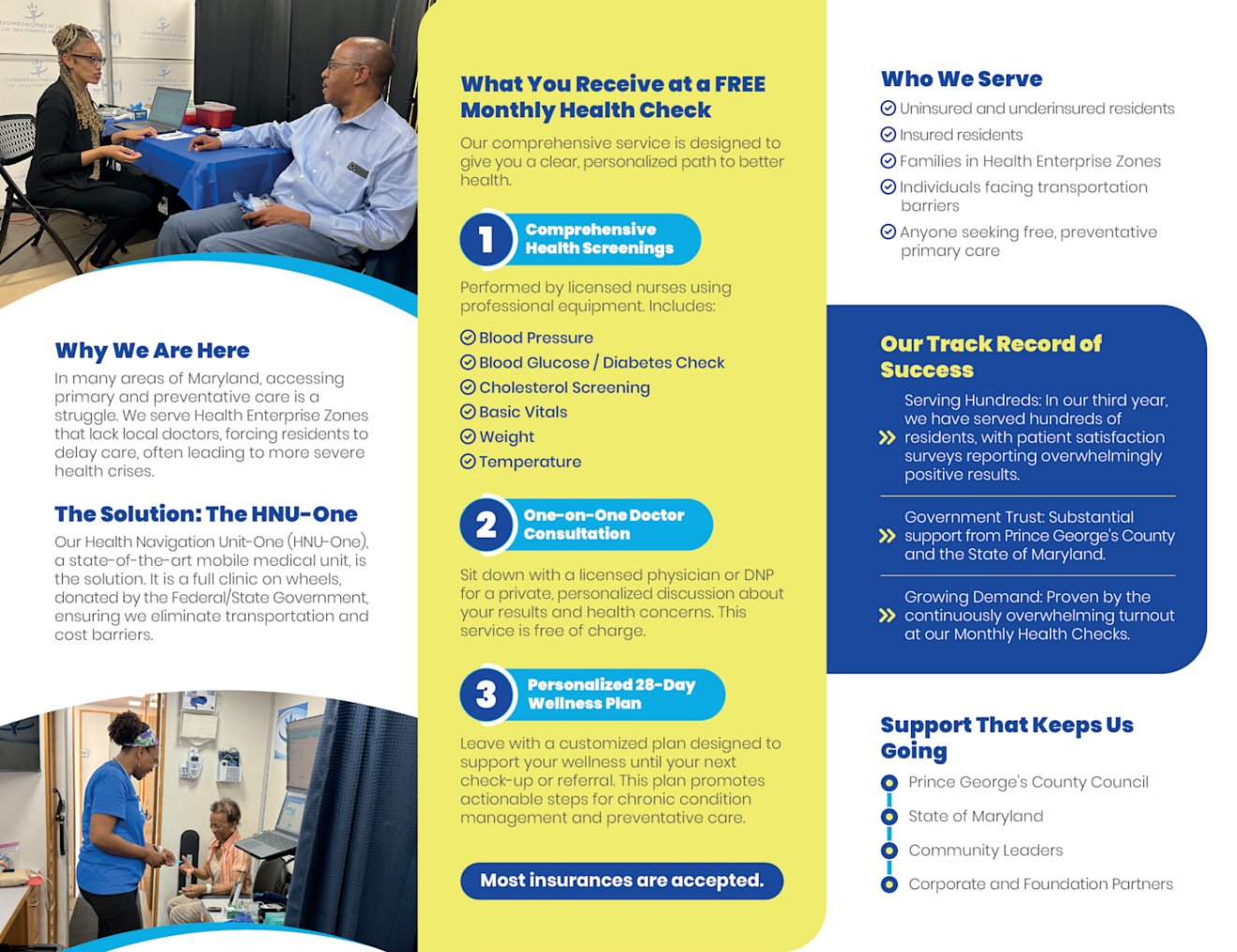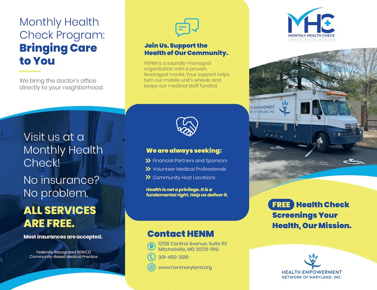 Health Empowerment Network of Maryland, Inc. is a federally recognized, tax-exempt, community-based medical practice delivering care at the point of need. We break down barriers to healthcare by reaching the elderly, veterans, women, children, and anyone in need—regardless of background or ability to pay.
